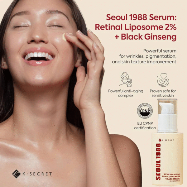 A: Yes! KSECRET SEOUL 1988 Serum is formulated with gentle yet effective ingredients, including Retinal Liposome, which is less irritating than traditional retinol. It’s a great option for sensitive skin types looking for anti-aging and brightening benefits.