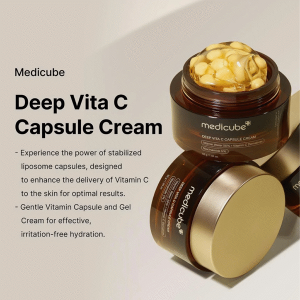 Medicube Deep Vita C Capsule Cream 55g is a highly effective K-beauty Vitamin C cream specially formulated to brighten dull skin, fade dark spots, and reduce signs of aging. Powered by 13.5% pure Vitamin C and advanced capsule technology, this cream locks in freshness to deliver maximum potency and visible results.